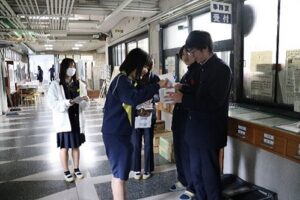 令和7年11月17日(月)から21日(金)まで、中高生徒会合同で赤い羽根共同募金活動を行いました。